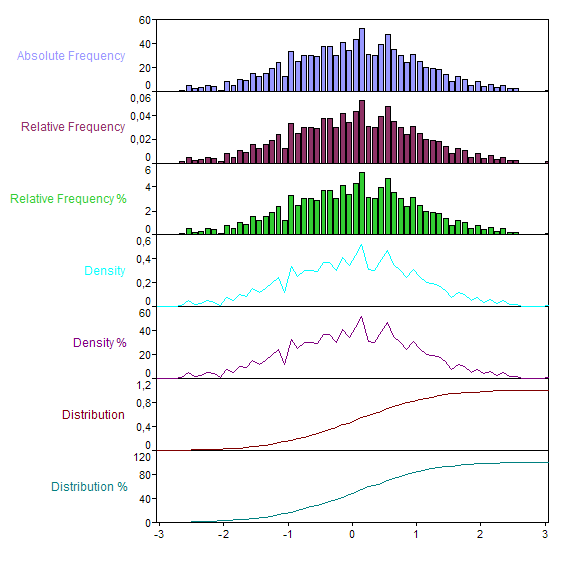 Provides the frequencies, normalized to the sum of one hundred, in the individual classes. |