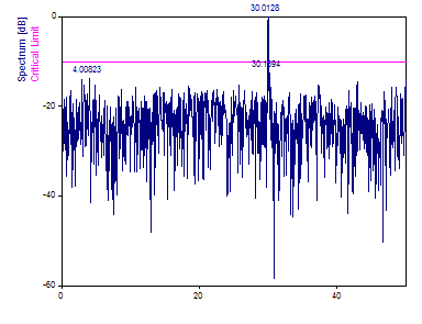 FlexPro offers peak-based critical limits for ascertaining whether or not a signal's peak is statistically significant. The reference is white (normally-distributed) noise. A 95 % critical limit is that level where in only 1 of 20 separate random noise signals would the largest peak present achieve this height strictly due to random chance. A 99.9 % critical limit is similarly that level where in only 1 of 1000 separate random noise sets would the largest peak attain this height.