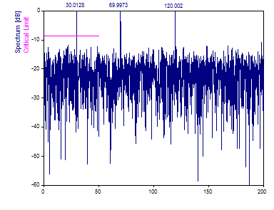 "Spectrum" is the Fourier Spectrum plot generated by the wizard. It uses the Spectrum, Critical Limit, and Peaks objects: