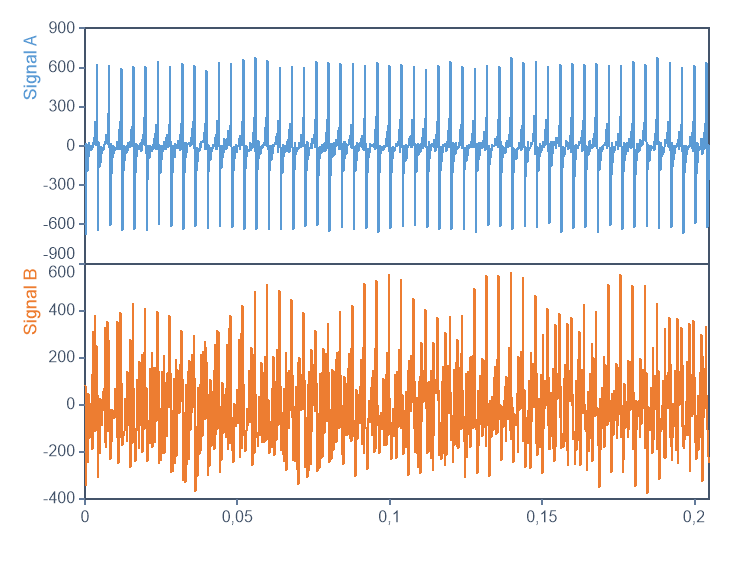 Click on Cancel to close the Wizard. Select the two data sets Signal A and Signal B by pressing the CTRL key while making the selection.