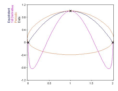 Como el primer punto y el último no son idénticos, el primer punto se añade al final de la serie de datos para la interpolación spline periódica. El resultado son cuatro valores interpolados.