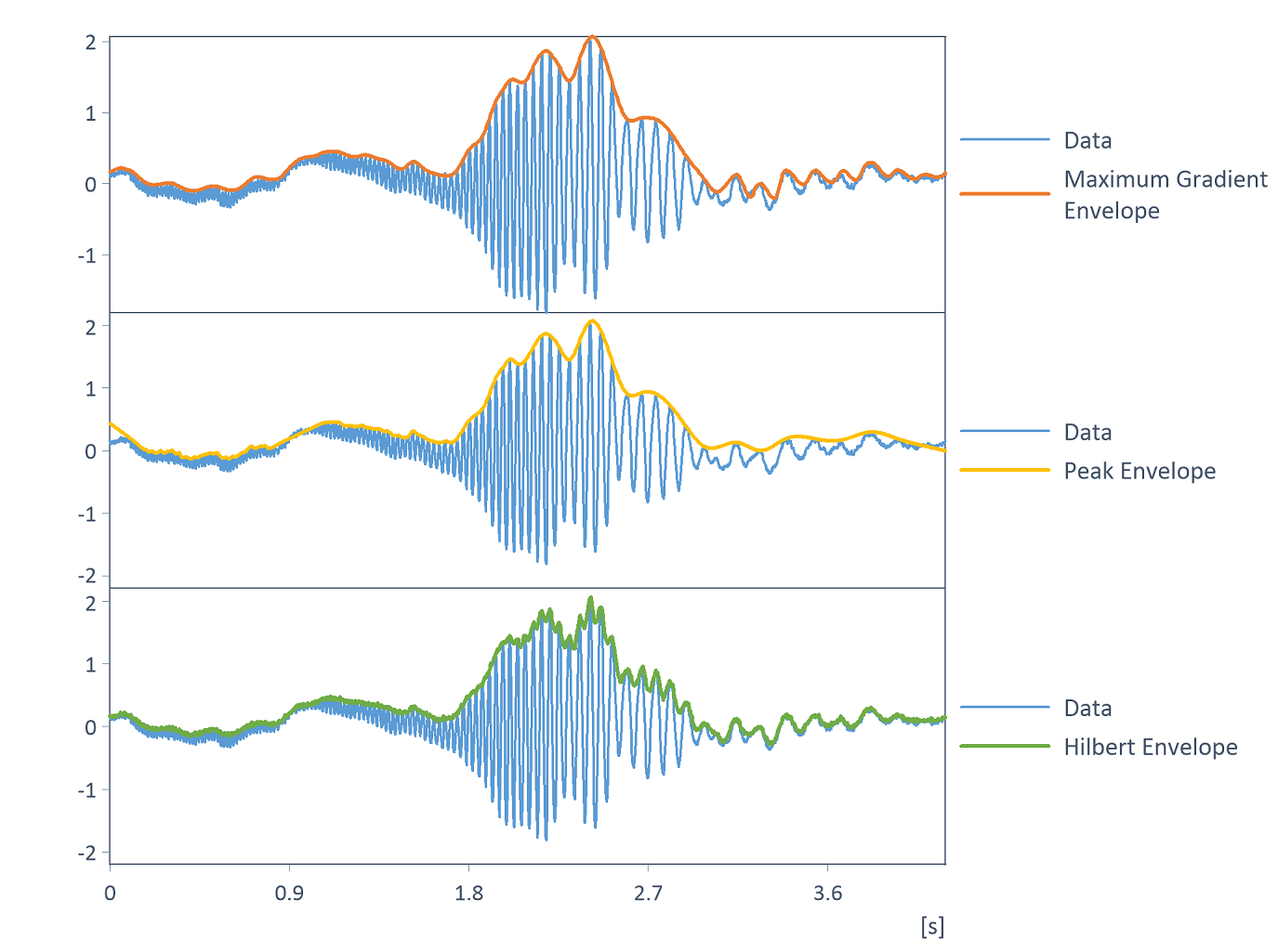 Existen tres algoritmos para calcular las envolventes: Pendiente máxima, el Envolvente de picos y la Transformada de Hilbert: