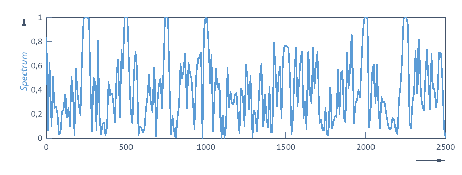 Si se utilizan varios segmentos, se puede generar un espectro de coherencia. La coherencia es 1 si los componentes son similares a una frecuencia determinada y 0 si las señales son diferentes o no están correlacionadas en absoluto. Se trata de un método habitual para buscar rangos de un espectro en los que una señal de salida es incoherente, es decir, los componentes espectrales no guardan relación con la señal de entrada.