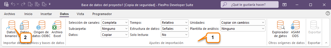 2.Ahora haga clic en Datos[Importar desde archivos y bases de datos] > Datos binarios para abrir el cuadro de diálogo Importar [2].