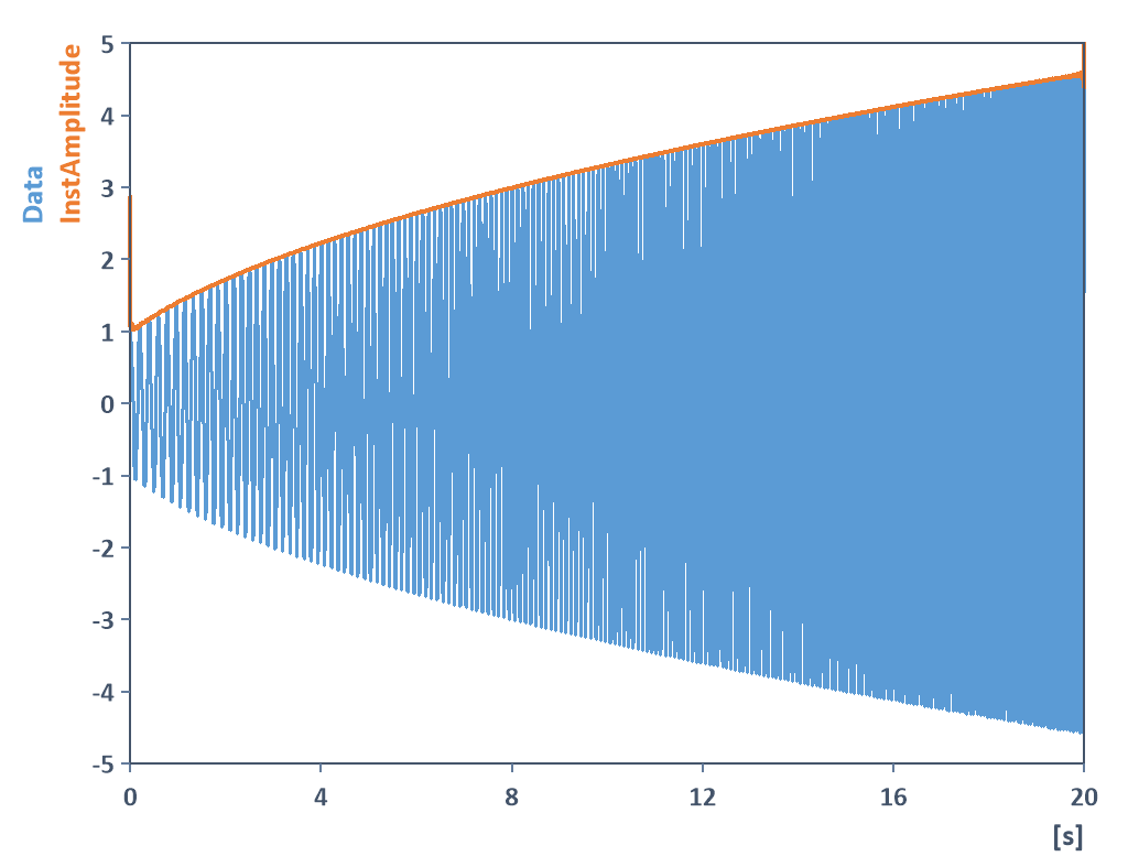 Por tanto, las cantidades instantáneas también pueden utilizarse para demodular señales (demodulación de amplitud, demodulación de fase, demodulación de frecuencia). Puede encontrar información al respecto en la ayuda en línea de la función AnalyticSinal.
