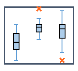 Puntos interiores: son todos los valores medidos que están dentro de los bigotes inferior y superior. |