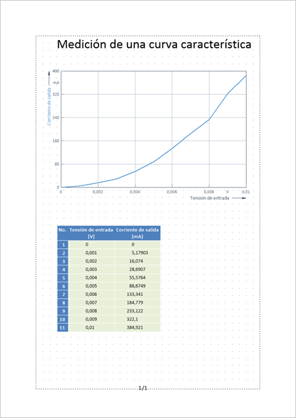 El uso del editor interno de documentos de FlexPro le ofrece opciones adicionales que no están disponibles en su procesador de texto. Esto permite compaginar automáticamente diagramas 2D, tablas de filas y tablas de columnas en las páginas siguientes. El número de páginas se ajusta automáticamente al volumen de datos. Los diagramas tienen el mismo tamaño en todas las páginas, pero puede colocarlos individualmente en cada página. Con las tablas es posible fijar no solo la posición, sino también el alto de cada página individualmente.
