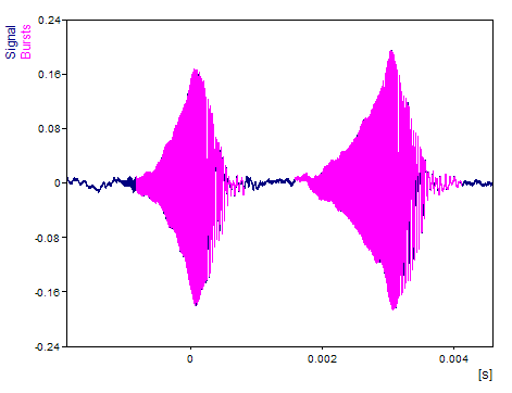 L'illustration suivante montre un signal avec deux salves en surbrillance :