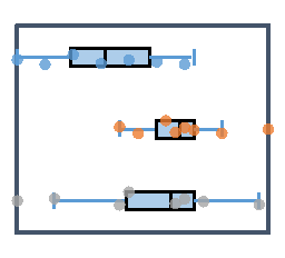 Les valeurs aberrantes et les points internes sont représentés de manière équidistante sur le box-plot.