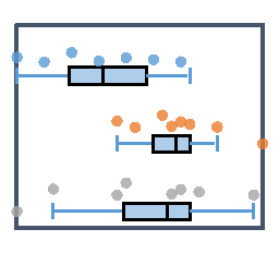 Les valeurs aberrantes et les points internes sont représentés de manière équidistante à côté du box-plot.