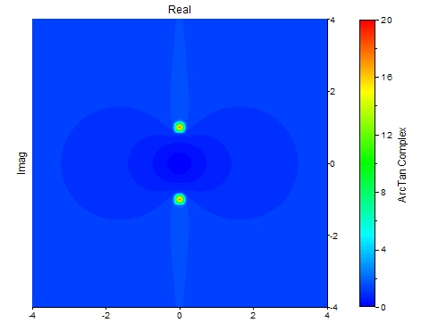 Le résultat a alors le type de données valeur complexe à virgule flottante de 64 bits. L'illustration suivante montre la variation de la valeur absolue de la fonction :
