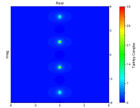 Le résultat a alors le type de données valeur complexe à virgule flottante de 64 bits. L'illustration suivante montre la variation de la valeur absolue de la fonction :