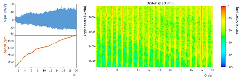 Dans la base de données projet C:\Users\Public\Documents\Weisang\FlexPro\2025\Exemples\Analyse d'ordre.fpd ou C:>Utilisateurs>Public>Documents publics>Weisang>FlexPro>2025\Exemples\Analyse d'ordre.fpd vous trouverez des exemples des différents cas d'utilisation et modes pour lesquels une analyse d'ordre peut être effectuée. En particulier, les graphiques ci-dessus y sont inclus.