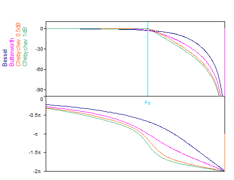 •Filtre de Bessel: Filtre ayant un bon comportement de transmission en rectangle et une bande passante plate, mais avec une pente relativement faible.