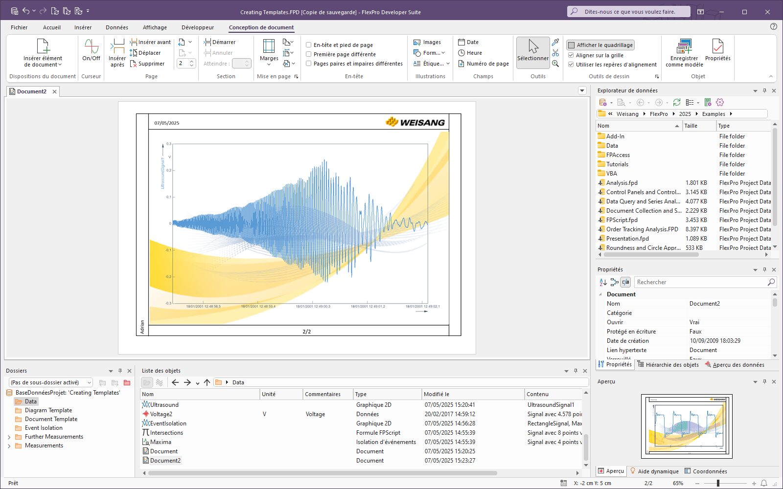 Les modèles FlexPro vous permettent de réutiliser chaque analyse et chaque présentation que vous créez aussi souvent que vous le souhaitez. Ces exemples illustrent la façon dont vous pouvez créer des modèles d'analyse, de diagramme et de document et comment différencier les différents modèles.