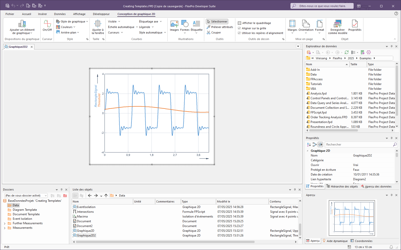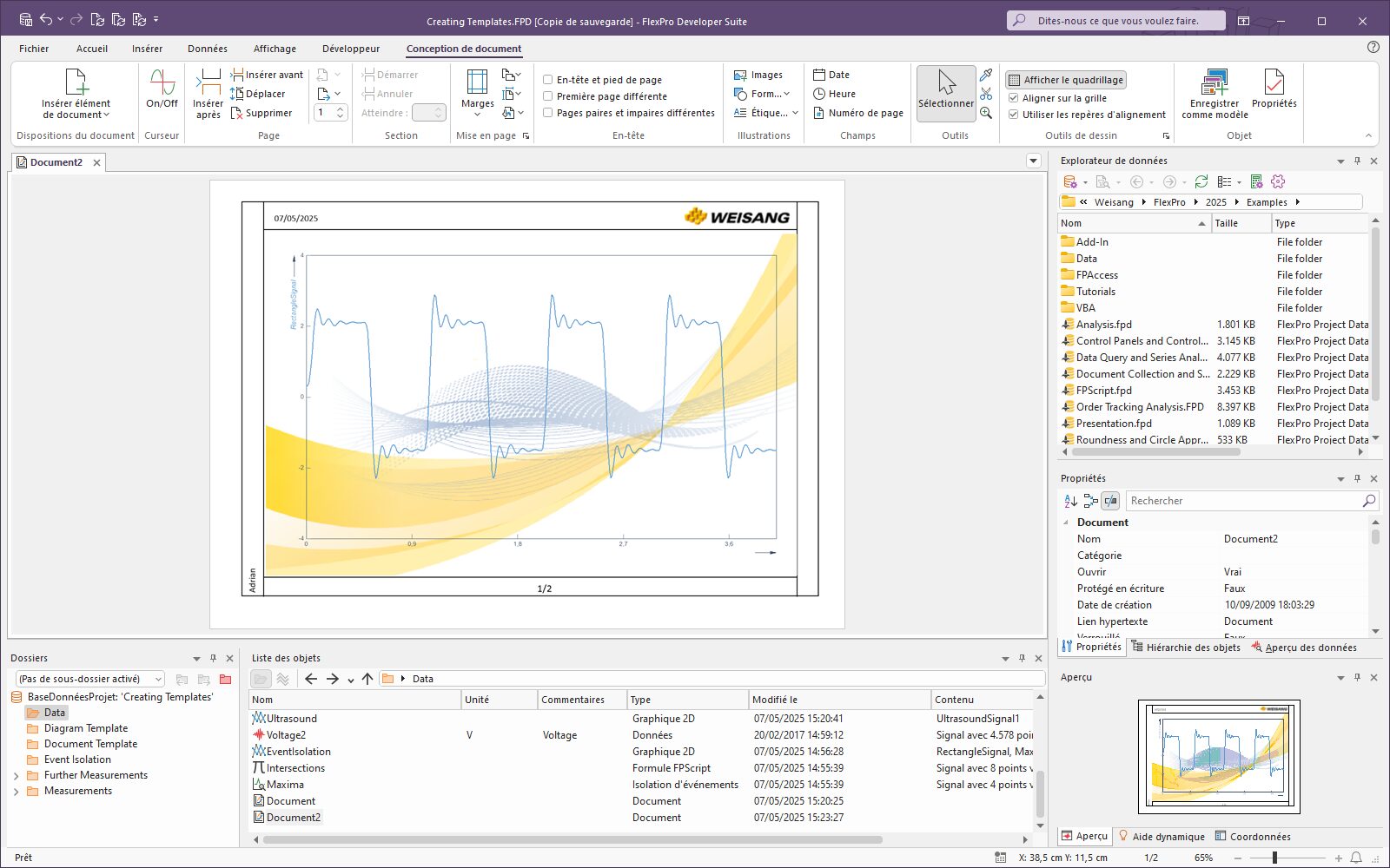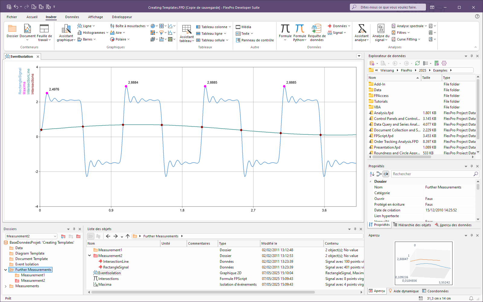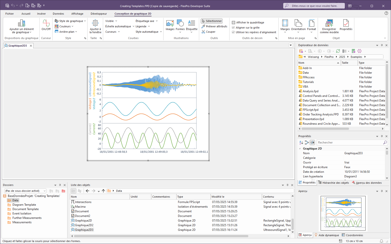 Les modèles FlexPro vous permettent de réutiliser chaque analyse et chaque présentation que vous créez aussi souvent que vous le souhaitez. Ces exemples illustrent la façon dont vous pouvez créer des modèles d'analyse, de diagramme et de document et comment différencier les différents modèles.