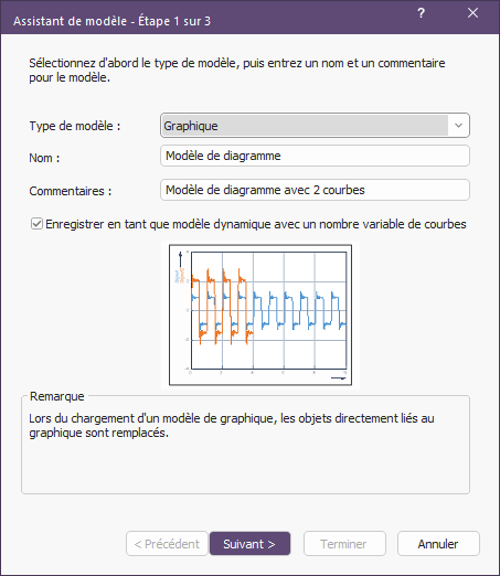 4.Activez l'option Enregistrer comme modèle dynamique avec un nombre variable de courbes. Cliquez sur Suivant.