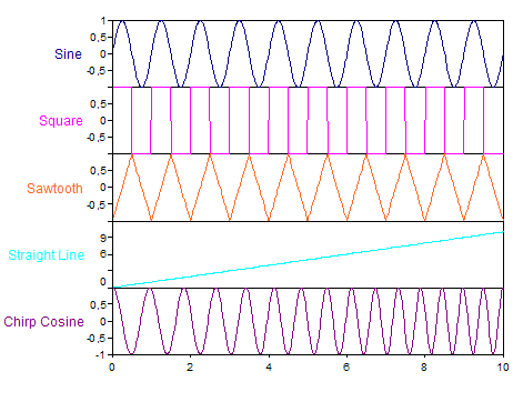 Mit diesem Analyseobjekt können Sie synthetische Signale berechnen, welche Sie z. B. zum Testen Ihrer Analysen, oder als Bestandteile Ihrer Dokumentationen, verwenden können.