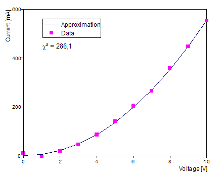 Folgende Grafik zeigt Messdaten einer quadratischen Kennlinie und deren Approximation: