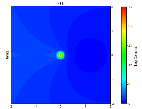 Ist Number komplex, dann wird die komplexe Logarithmusfunktion berechnet. Das Ergebnis hat dann den Datentyp komplexe 64-Bit Fließkommazahl. Folgende Grafik zeigt den Betragsverlauf der Funktion: