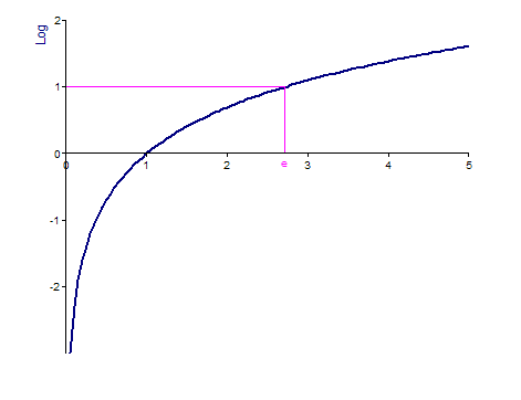 Für ein reelles Argument wird die reelle Logarithmusfunktion berechnet. Number muss dann positiv sein. Für jeden negativen Wert von Number gibt die Funktion einen ungültigen Wert zurück. Das Ergebnis hat den Datentyp 64-Bit Fließkommazahl. Folgende Grafik zeigt den Verlauf der Funktion: