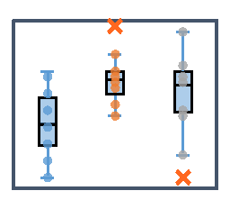 Position der unteren Antenne: Q1 - 1,5 × IQR. Der Wert entspricht nicht diesem berechneten Wert, sondern dem Messwert, der noch innerhalb dieser Grenze liegt. |