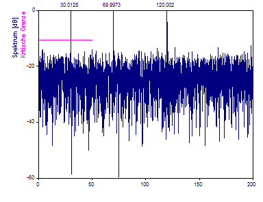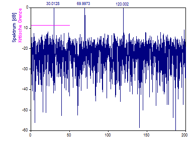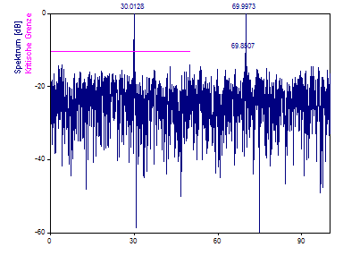 Sie sehen, dass im Spektrum die Frequenzkomponenten 30 und 70 sichtbar sind.
