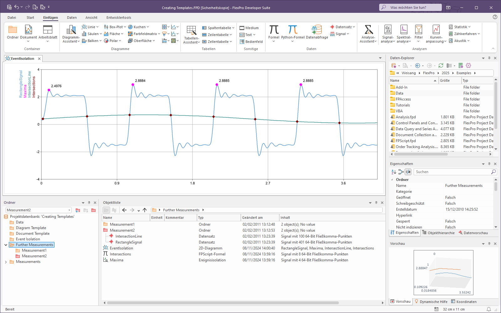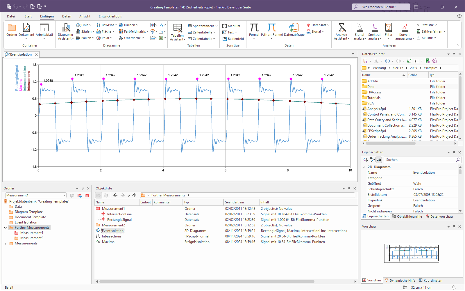 1.Markieren Sie im Ordner Data das Objekt RectangleSignal und wählen Sie anschließend Einfügen[Diagramme] > Diagramm-Assistent > Aus Vorlage.