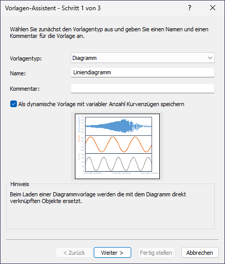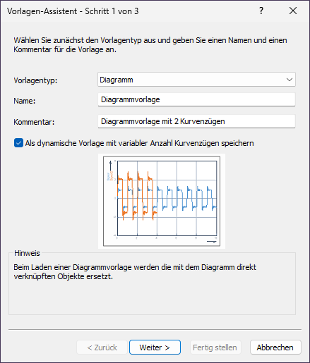 4.Aktivieren Sie die Option Als dynamische Vorlage mit variabler Anzahl Kurvenzügen speichern. Klicken Sie auf Weiter.