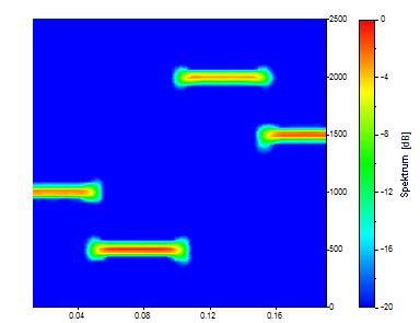 Diese Darstellung gibt den Zeit-Frequenz-Kompromiss bei einer guten Frequenzauflösung und einer deutlichen Zeitunschärfe wieder.
