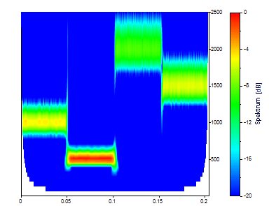 "Spektrum" ist die Darstellung des Zeit-Frequenz-Spektrums, das vom Analyseassistenten erzeugt wurde. Es benutzt das "Spektrum"-Objekt.